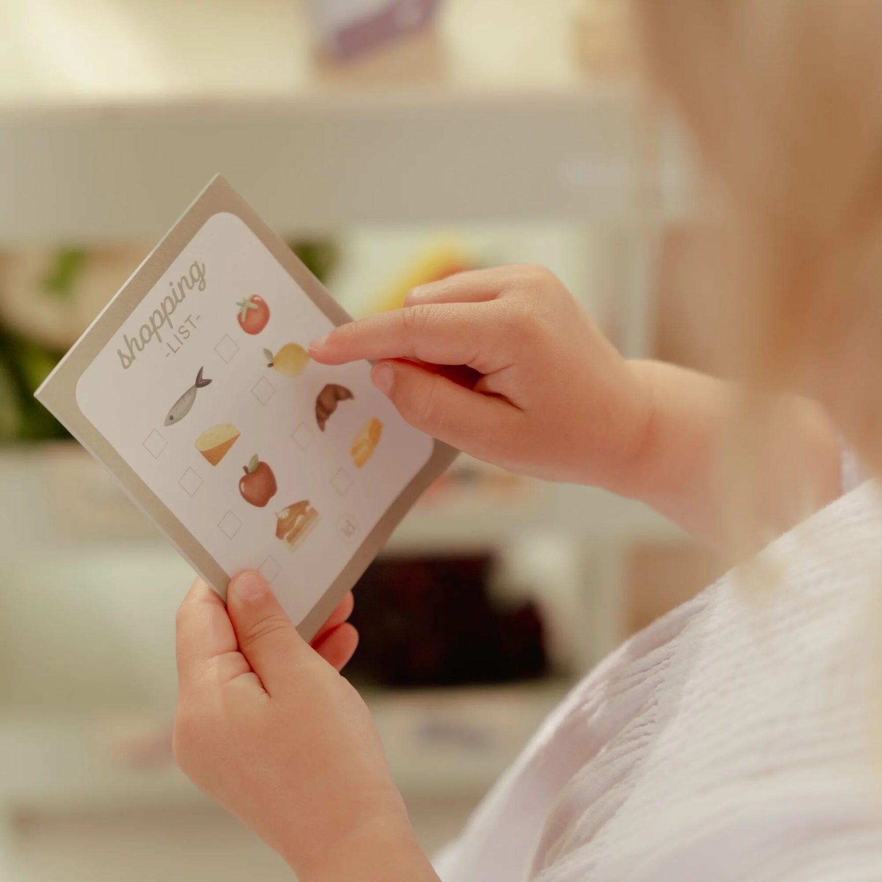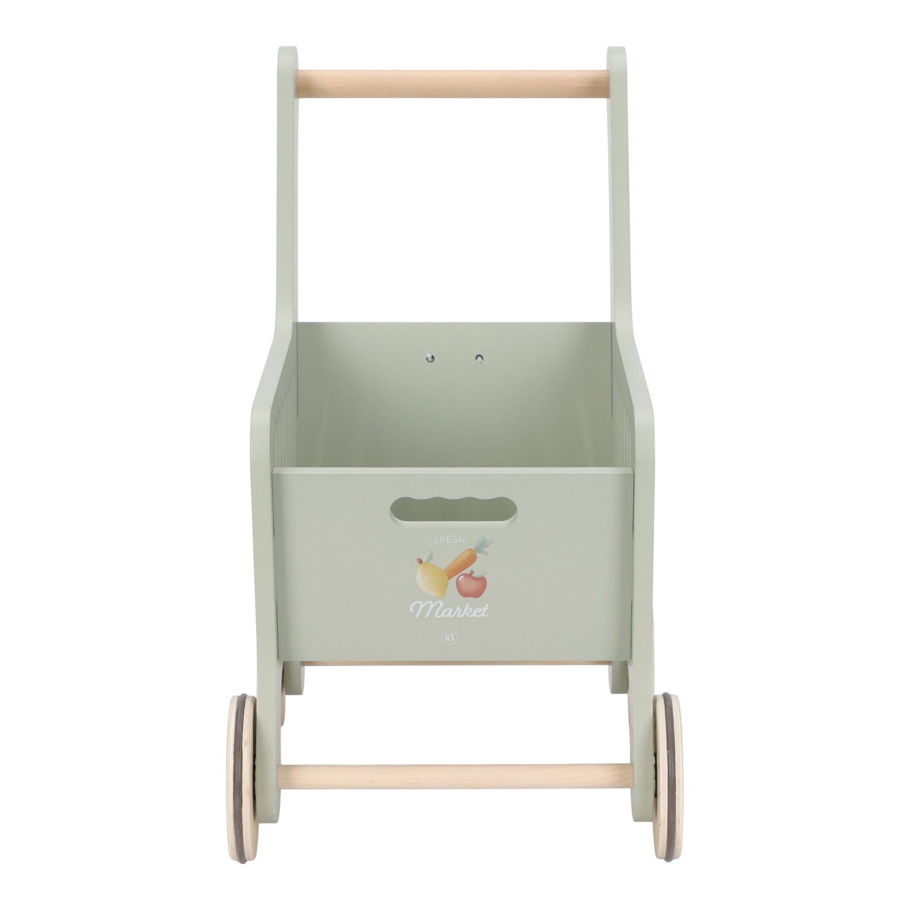 Shopping becomes an adventure! With this wooden play shopping cart, you can get everything you need. Thanks to the spacious storage area, all your groceries fit inside, even if your list is long. The wooden clip keeps your shopping list securely in place, so you don’t forget anything. The set includes various grocery items and a shopping bag, so you can start playing right away. The cart is decorated with a fun illustration on the front, making playtime even more enjoyable. Want the ultimate shopping experience? Combine the cart with the market stall and enjoy endless shopping fun!