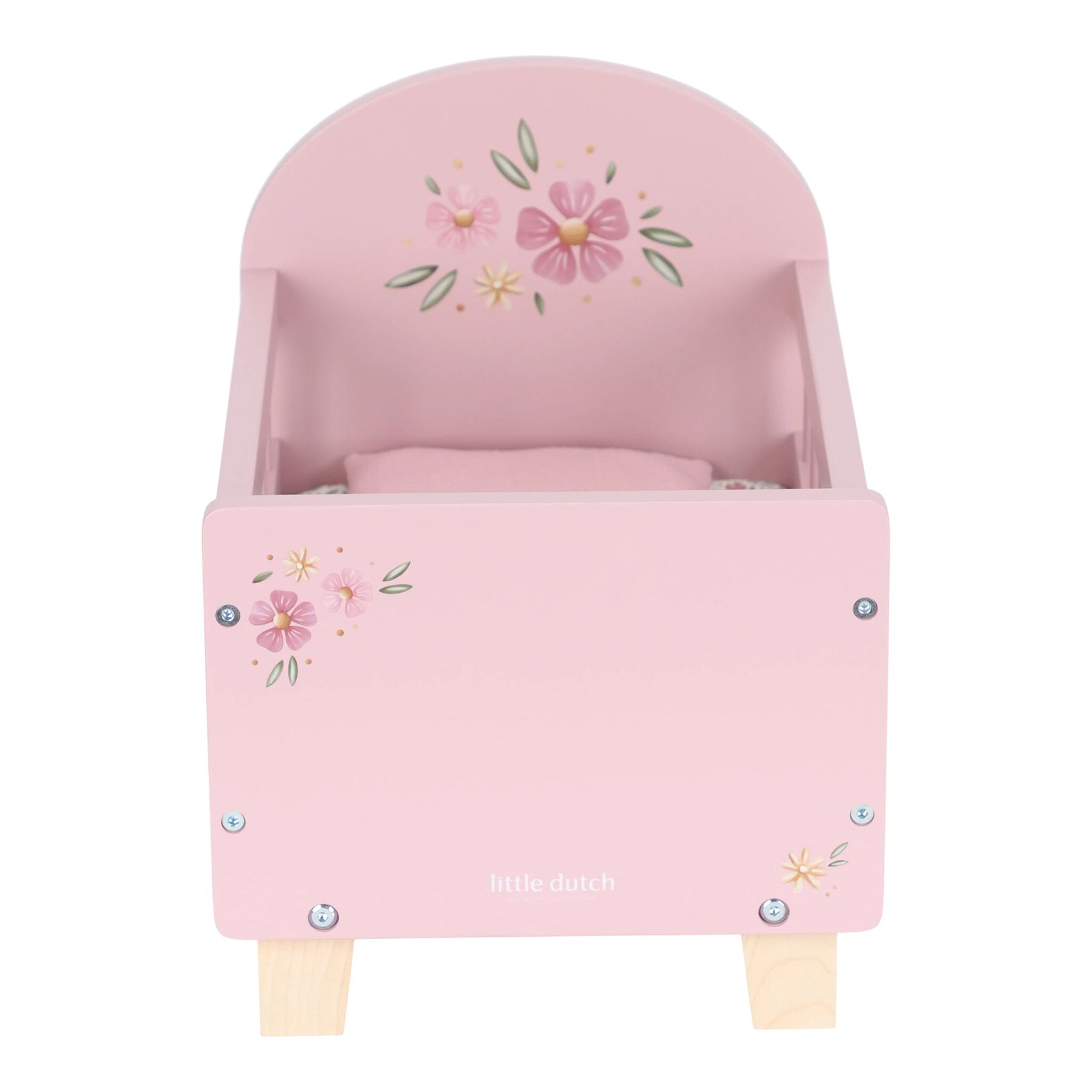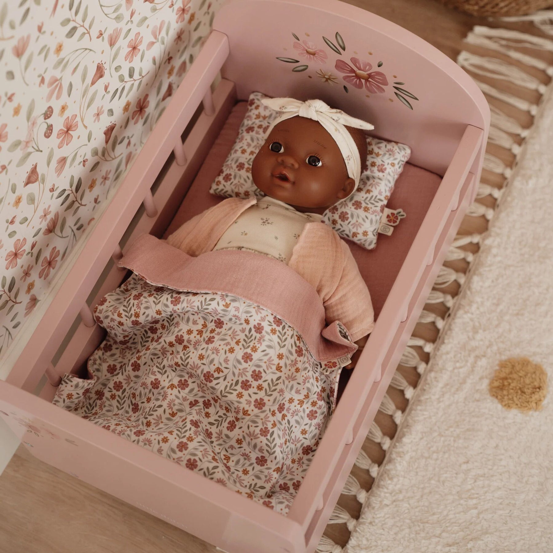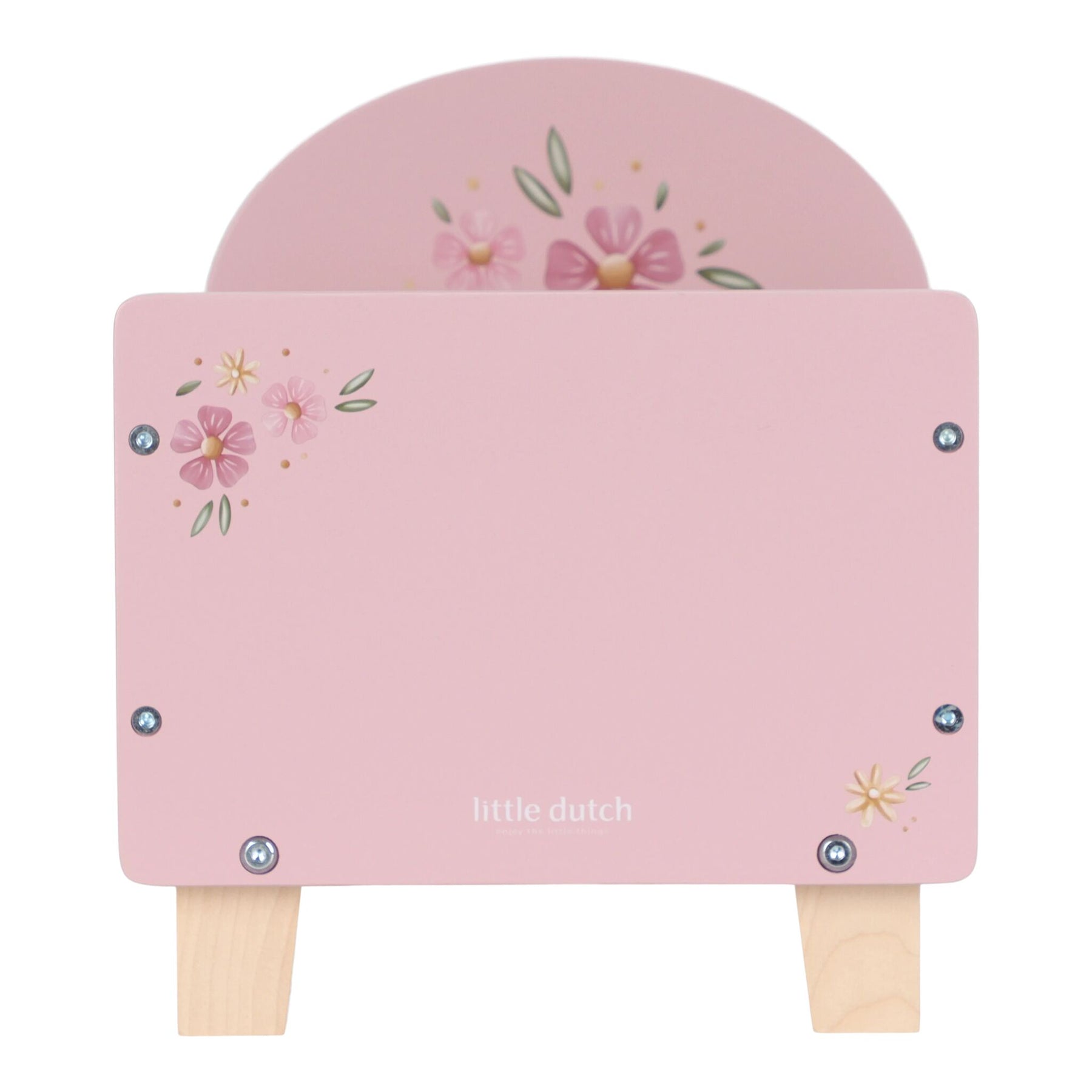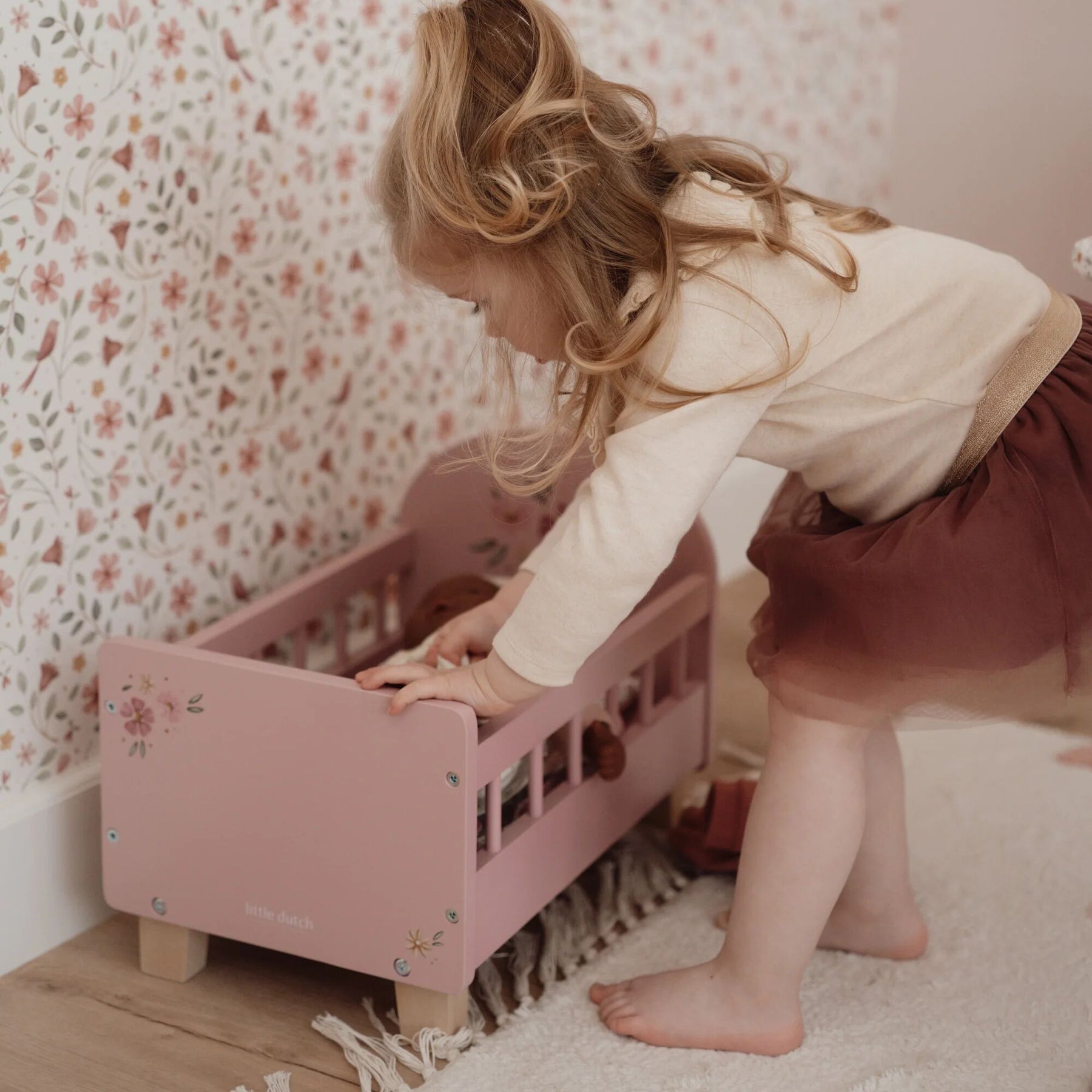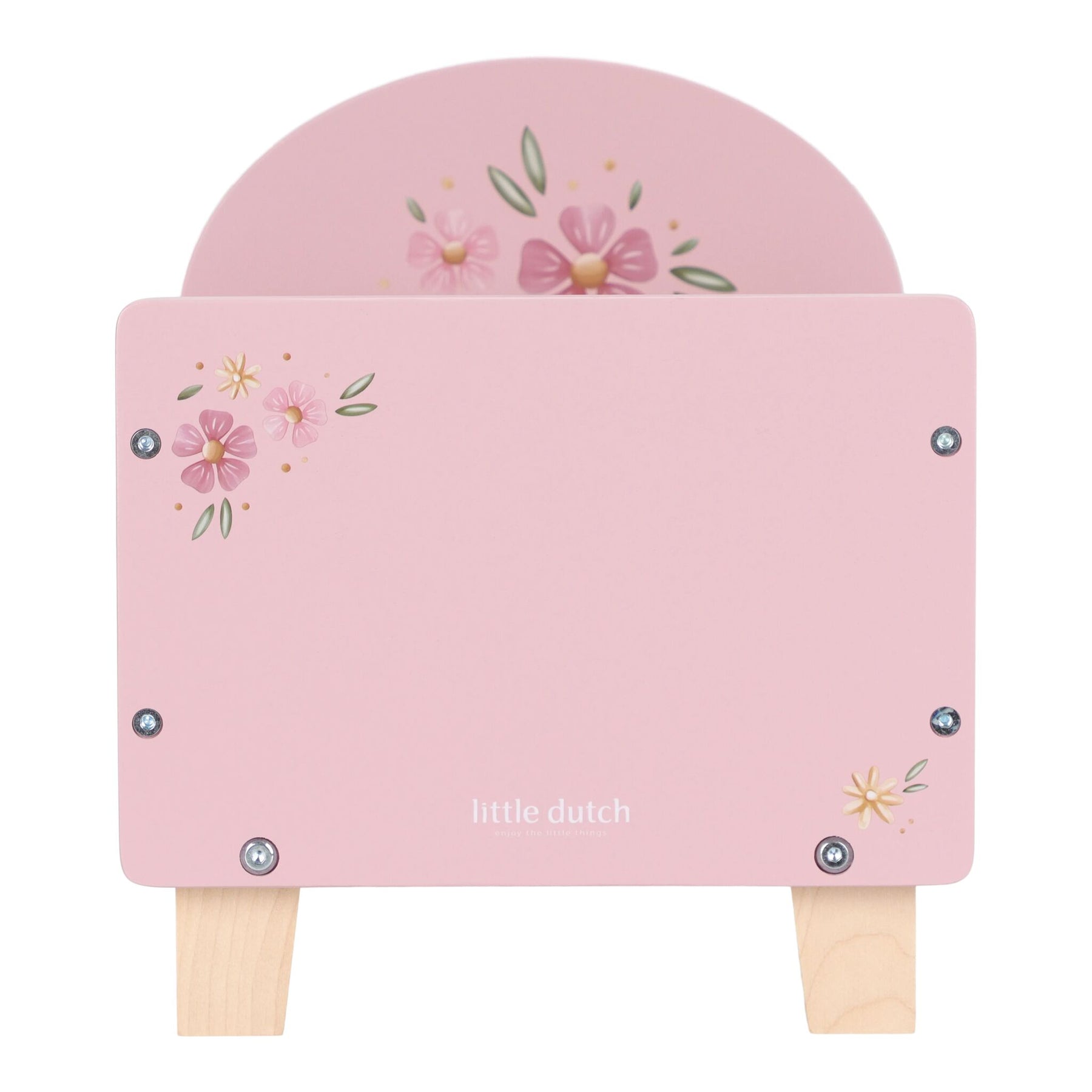 This wooden doll stroller is the perfect companion for walks with your doll. The sturdy wooden construction and rubber wheels ensure a smooth ride while protecting your floor. The seat is covered with the romantic Soft Flowers design, giving the stroller a charming look. Whether playing indoors or outdoors, your doll can always join in on an adventure with this stroller. Endless walking fun guaranteed!