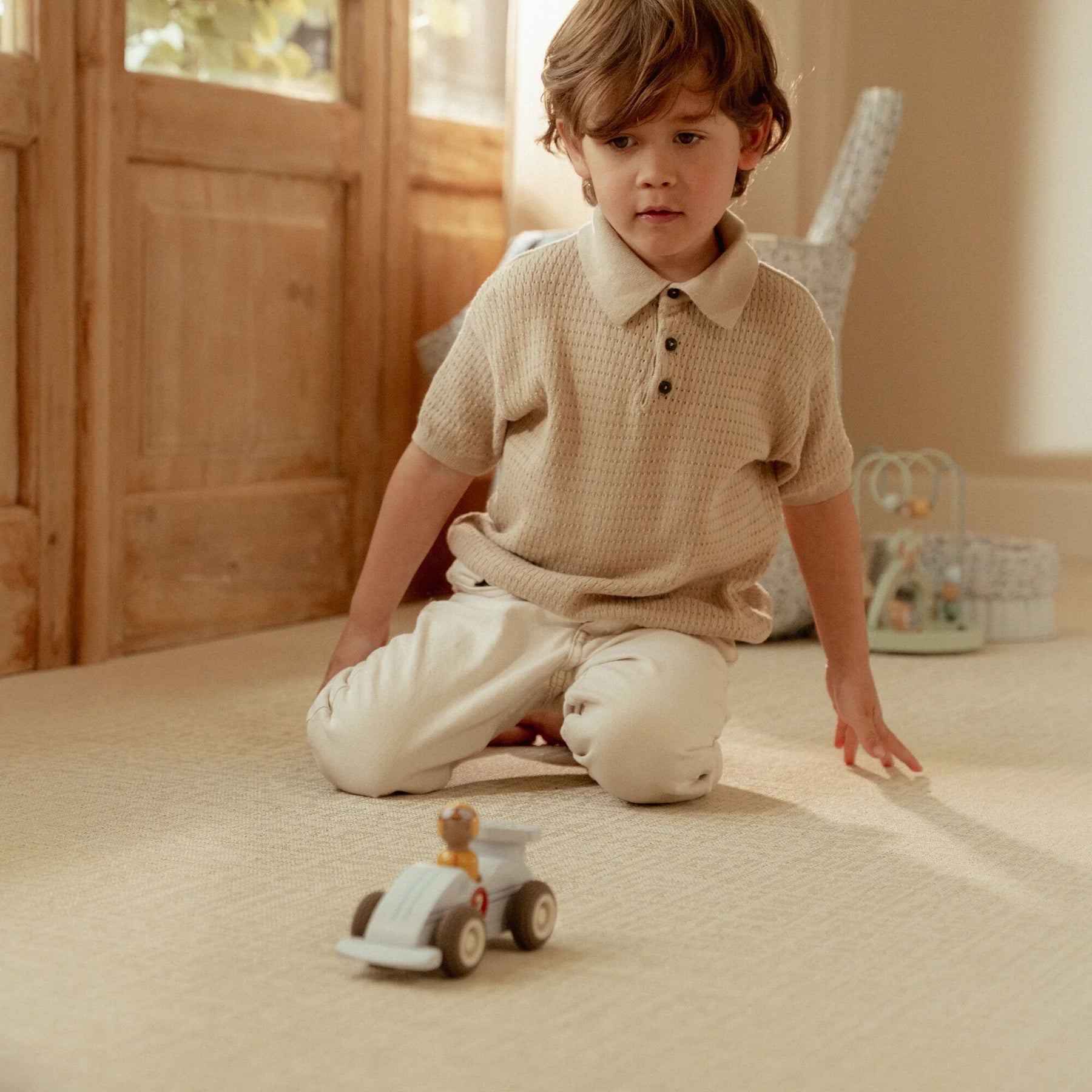 Ready, set, GO! This set of two wooden race cars features a cool pull-back function. Pull them back, release, and watch them speed away. Includes two fearless race drivers ready to compete. Race across the floor, build a track, and see who crosses the finish line first. This race car toy is perfect for little speed enthusiasts and provides endless fun. Which race car will win your competition?